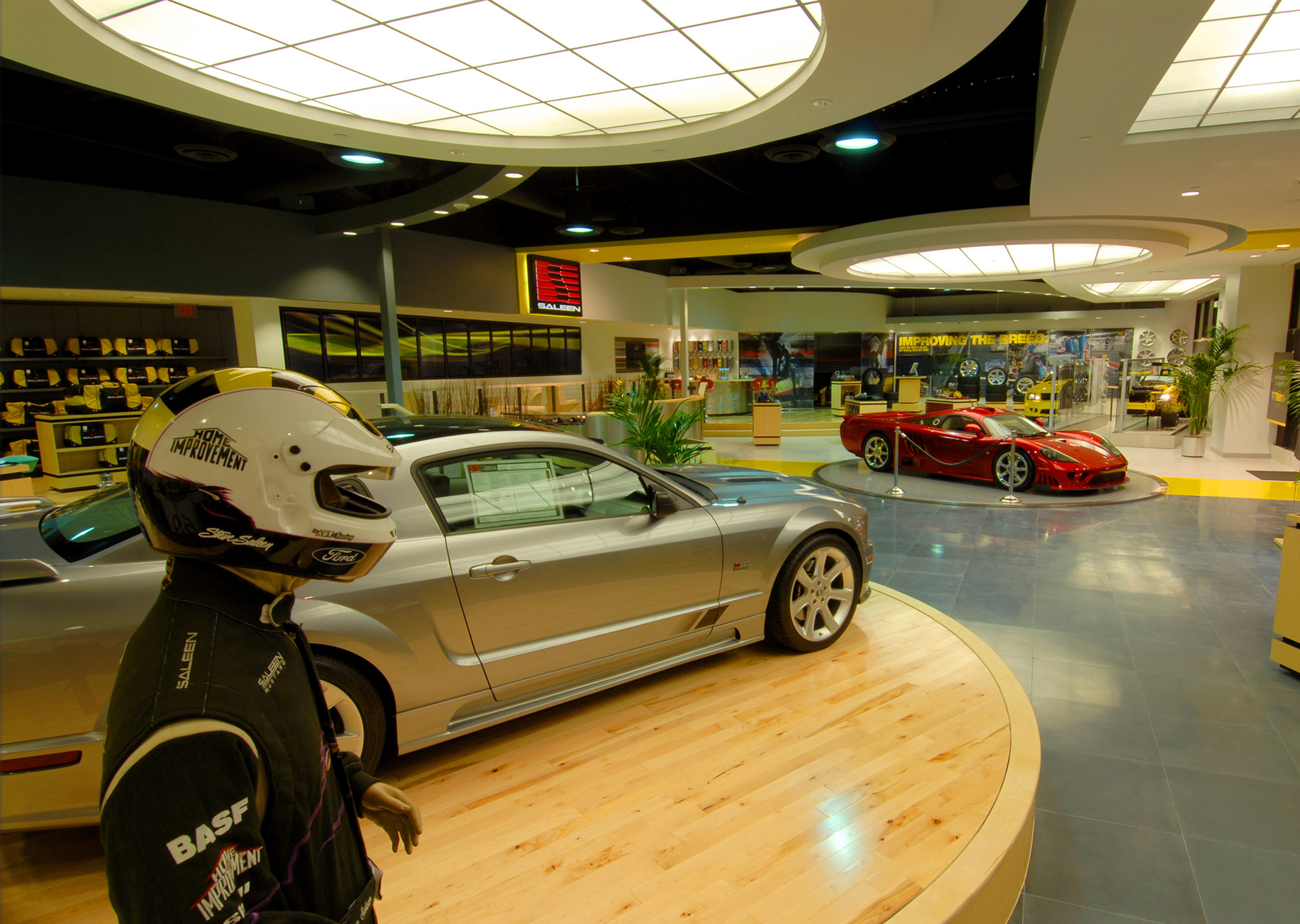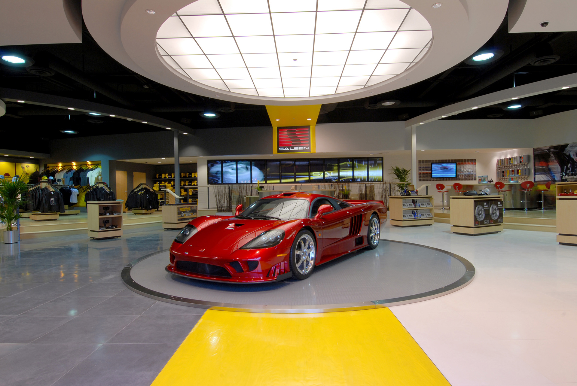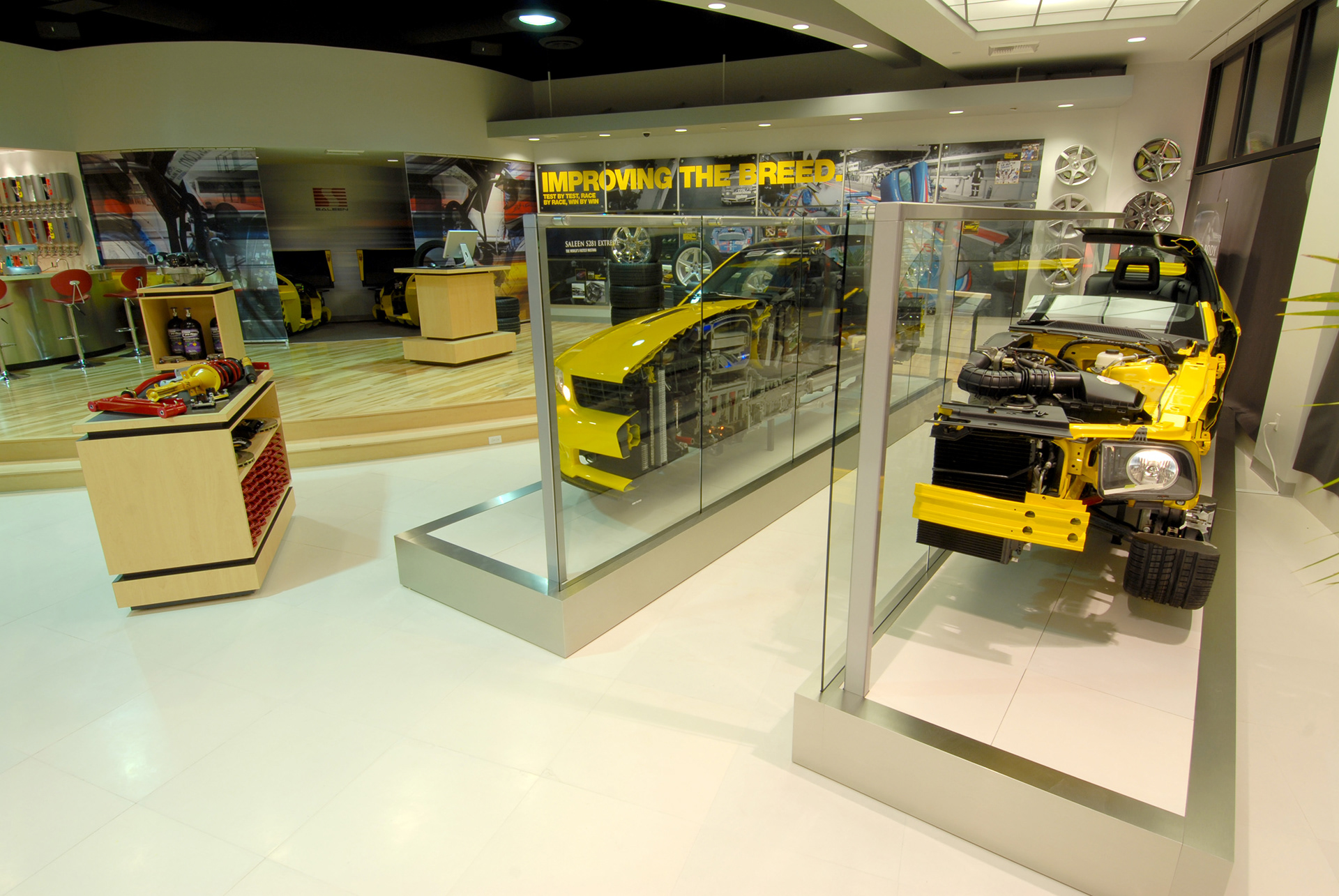 The Saleen Store was designed as a brand immersion experience for consumers previously not exposed to the rich racing history of the niche automotive company. Style, Energy and Performance are conveyed by the colors, finishes and technology throughout the space.